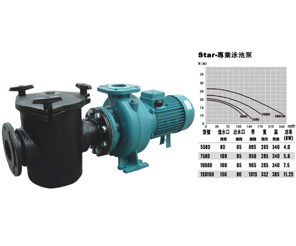 产品品牌:西班牙"亚士霸"ESPA 产品名称:泳池专用全金属水泵 产品系列 4.0-11.25kw 功能简介:防腐蚀大流量,防漏电,带前置毛发收集器 适用范围:泳池、冲浪池、戏水池、中水、自来水、海洋馆等动力匹配