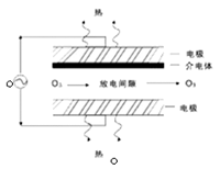 干燥的氧气通过高能电磁场电晕放电,氧气分子被离解成氧原子,氧原子与氧分子碰撞形成臭氧。
