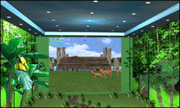 采用360°全景真实森林、雪原、山野、晴空、深海等影像,逼真再现野外狩猎场景。各种凶猛动物(包括鸟类、猎豹、老虎、狮子、黑熊等十余钟)以各种姿势 或跑、或跳、或飞、穿梭其间。若狩猎者连续几枪没有击中目标,动物将会张牙舞爪地向狩猎者扑来,令人胆战心惊,怎么办?是逃命,还是沉着应战?是对狩猎者 心理上的一次考验。狩猎者还可以回到侏罗纪,与凶猛无比的恐龙斗志斗勇,一决雌雄!